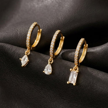 Three lower-lobe hoops designed to mix form and asymmetry.Each hoop carries its own diamond expression, creating a subtle graduated sparkle that elevates any ear stack.