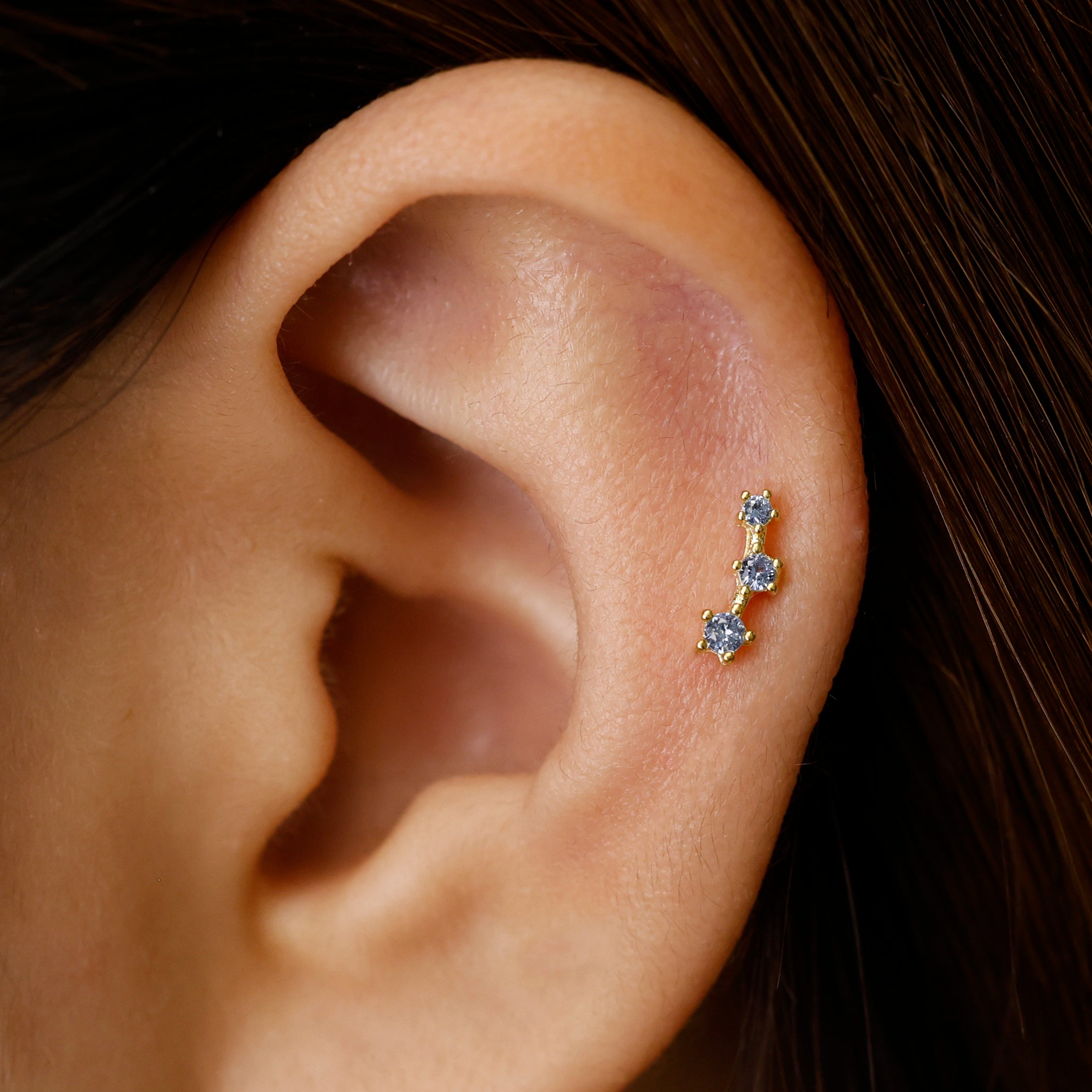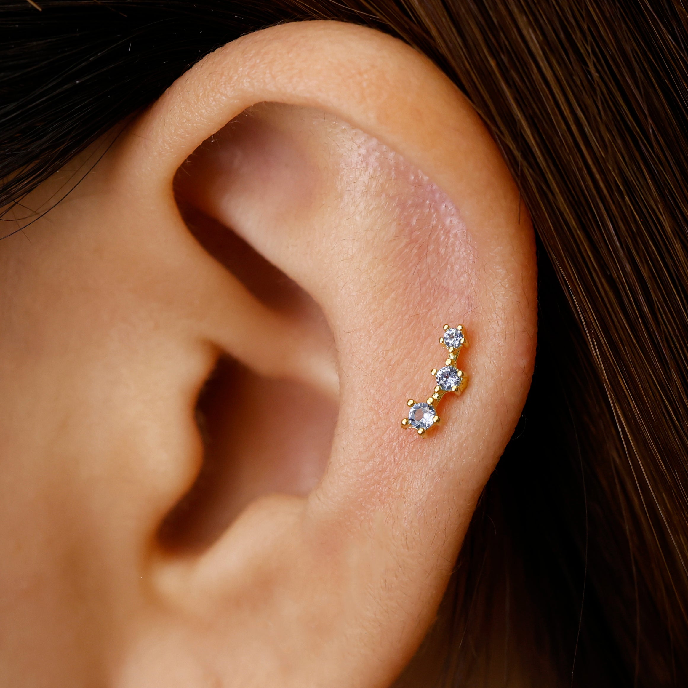 The zircon dainty climber flat back earrings are designed like a shooting star on your ears that elevate your style with the sparkling zircon birthstones along the earlobe or cartilage. Custom the flat back earrings to your preferred style for a perfect helix, earlobe, tragus piercing. Crafted in gold vermeil and 925 sterling silver, the zircon dainty climber flat back earrings are the combination of comfort and elegance.