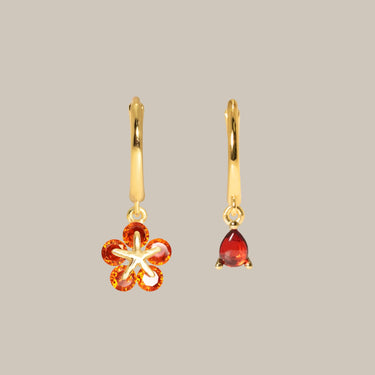 Garnet Cherry Blossom Drip Mismatched Hoops