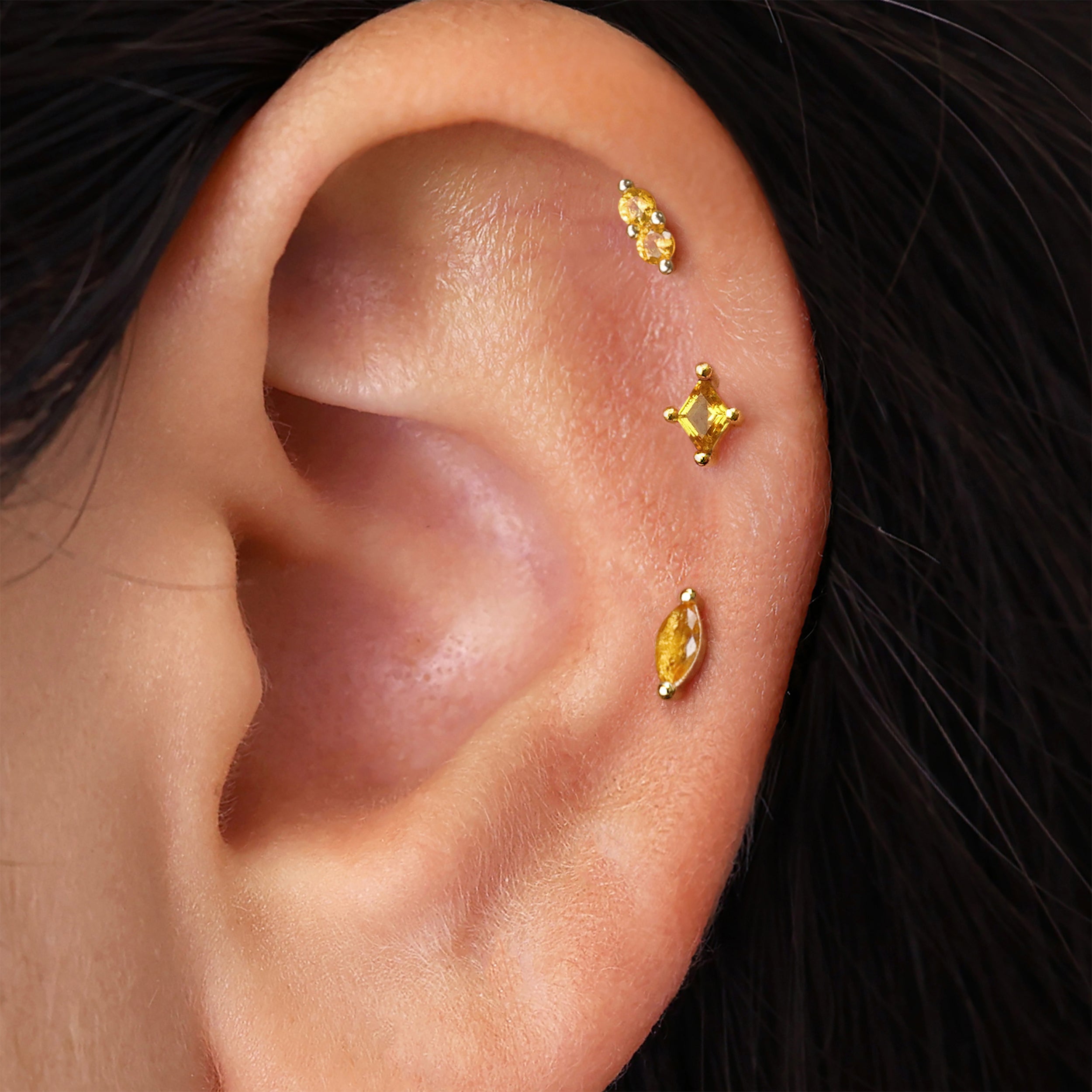 Dainty Yellow Topaz Flat Back Set