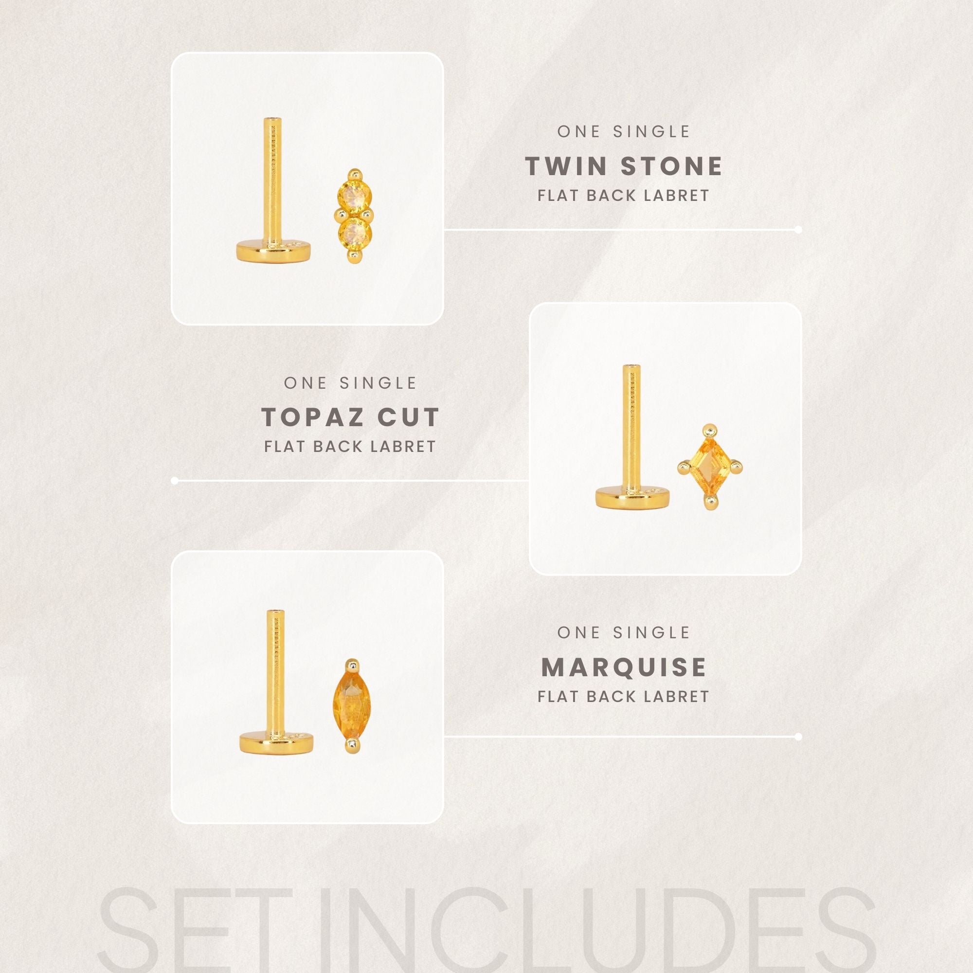 • 1 Single Topaz Twin Stone Flat Back Labret