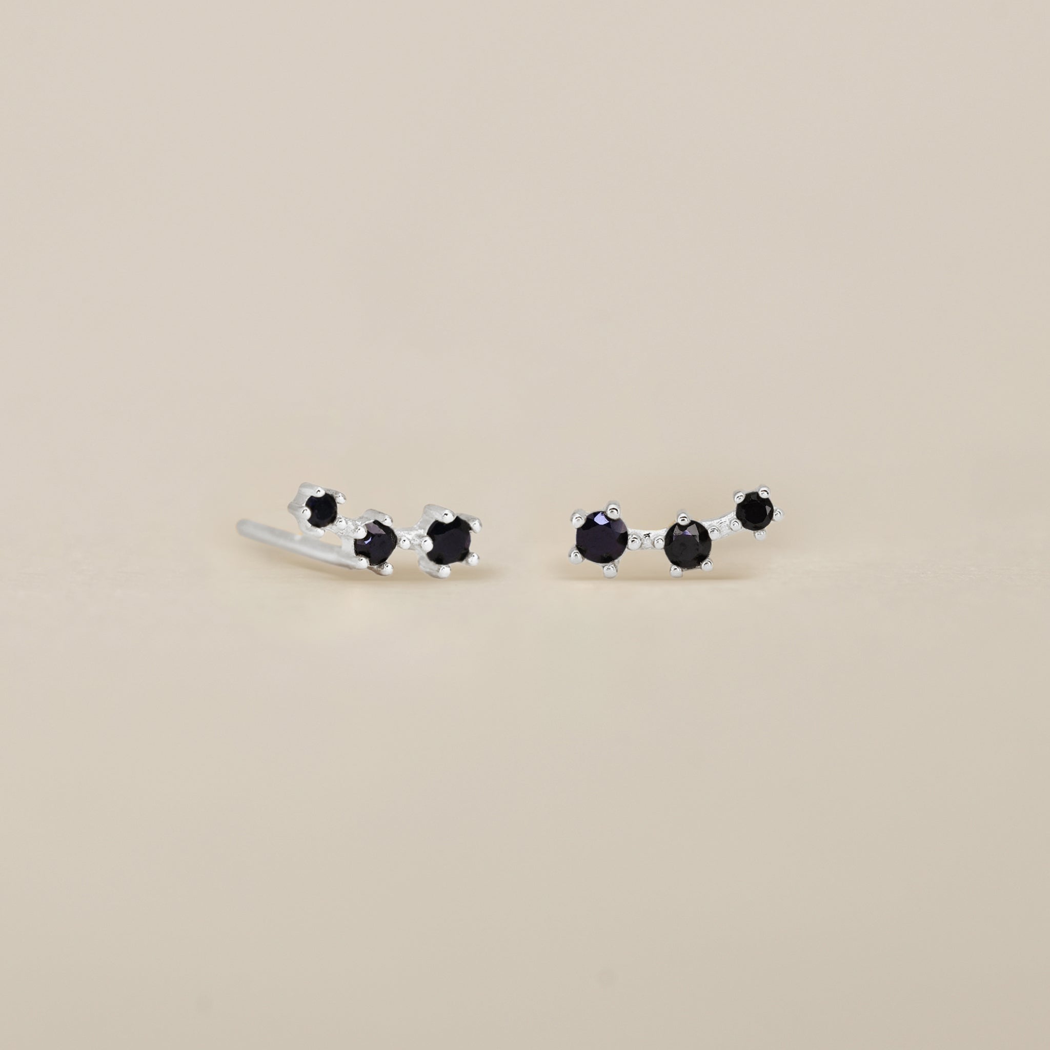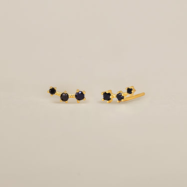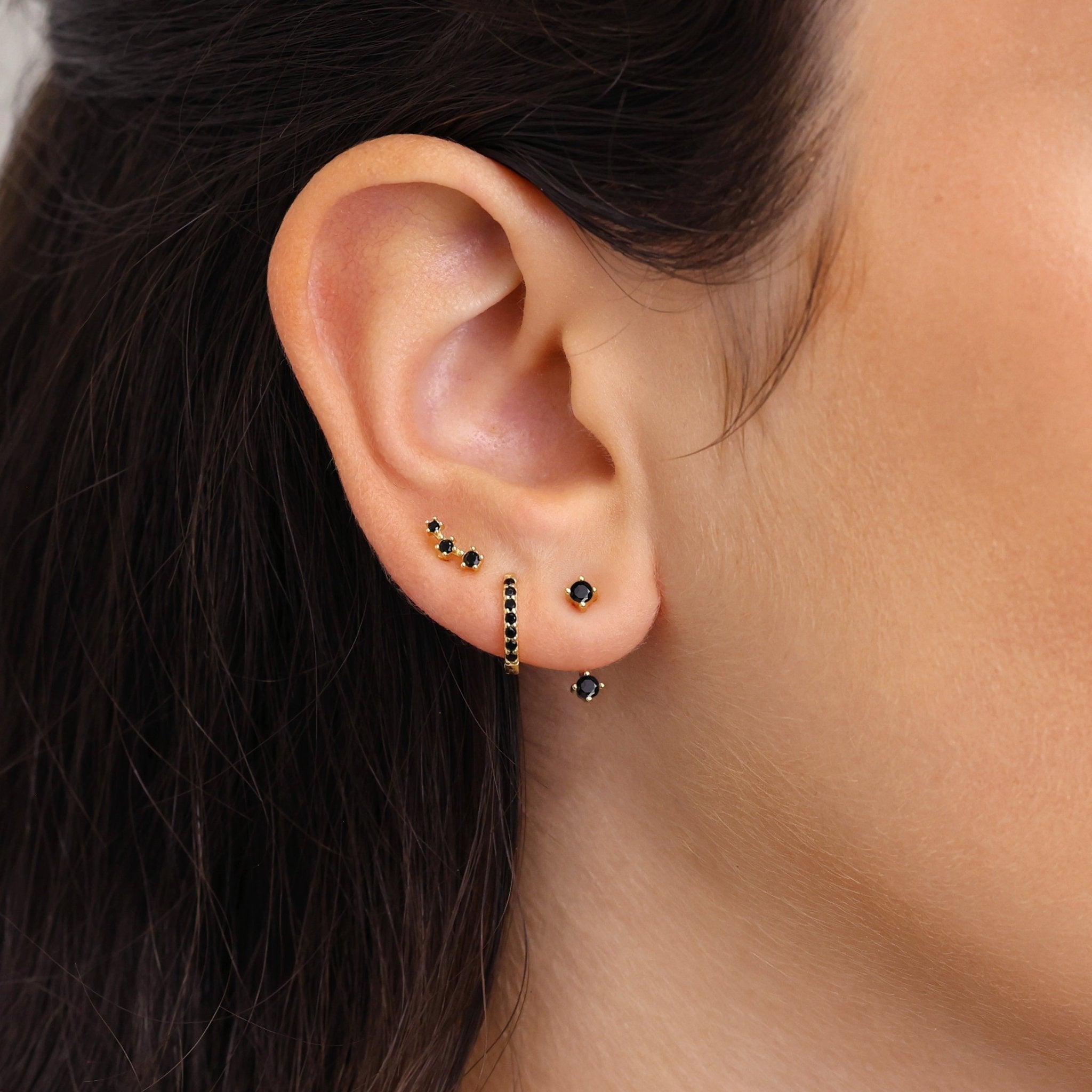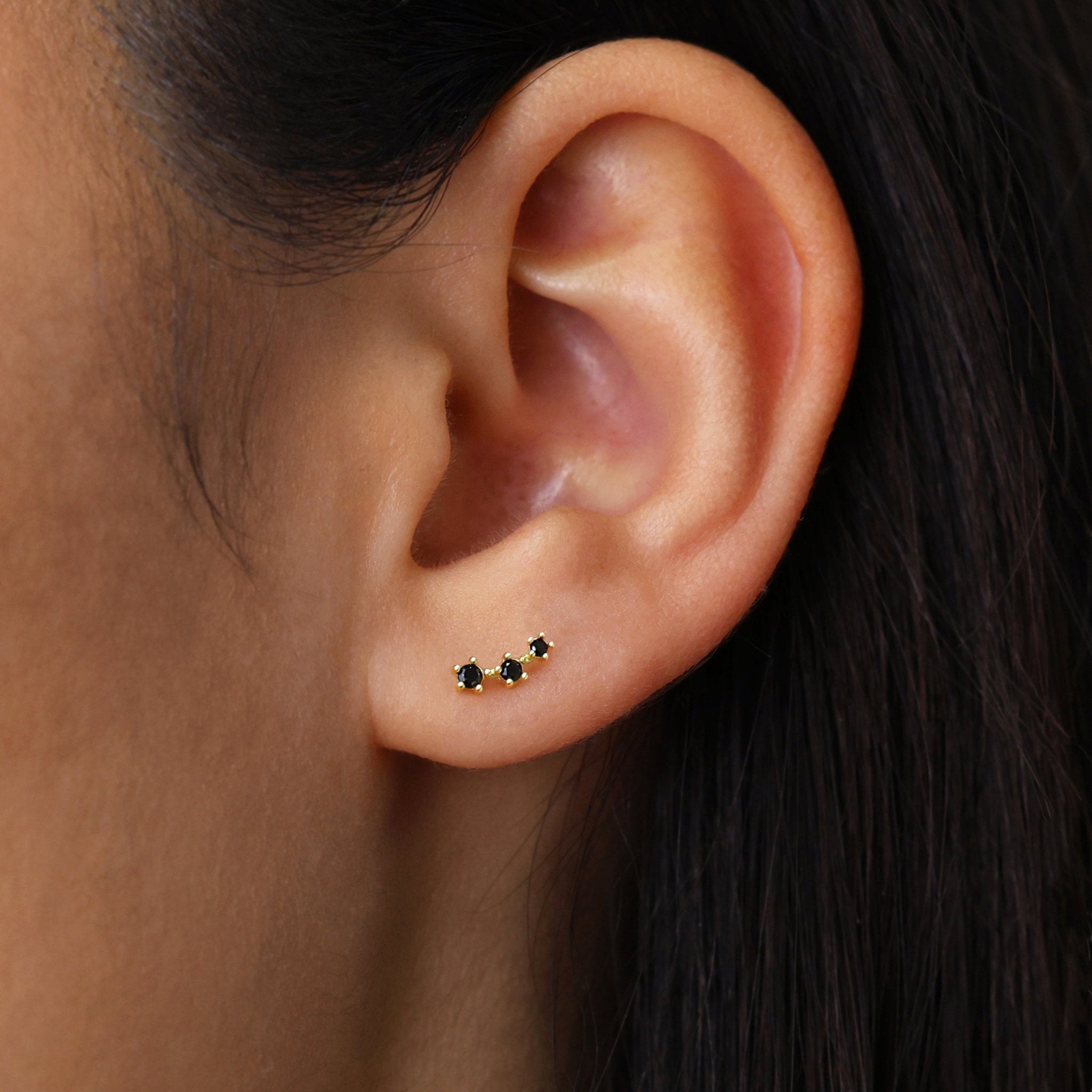 Stack your earring set with these Elena black onyx climber stud earrings. Embellished with a row of chic black onyx gemstones, the curved climber stud earrings complement your ears' silhouette and make a dainty & elegant addition to your earring stack. Available in gold vermeil and sterling silver finishes.