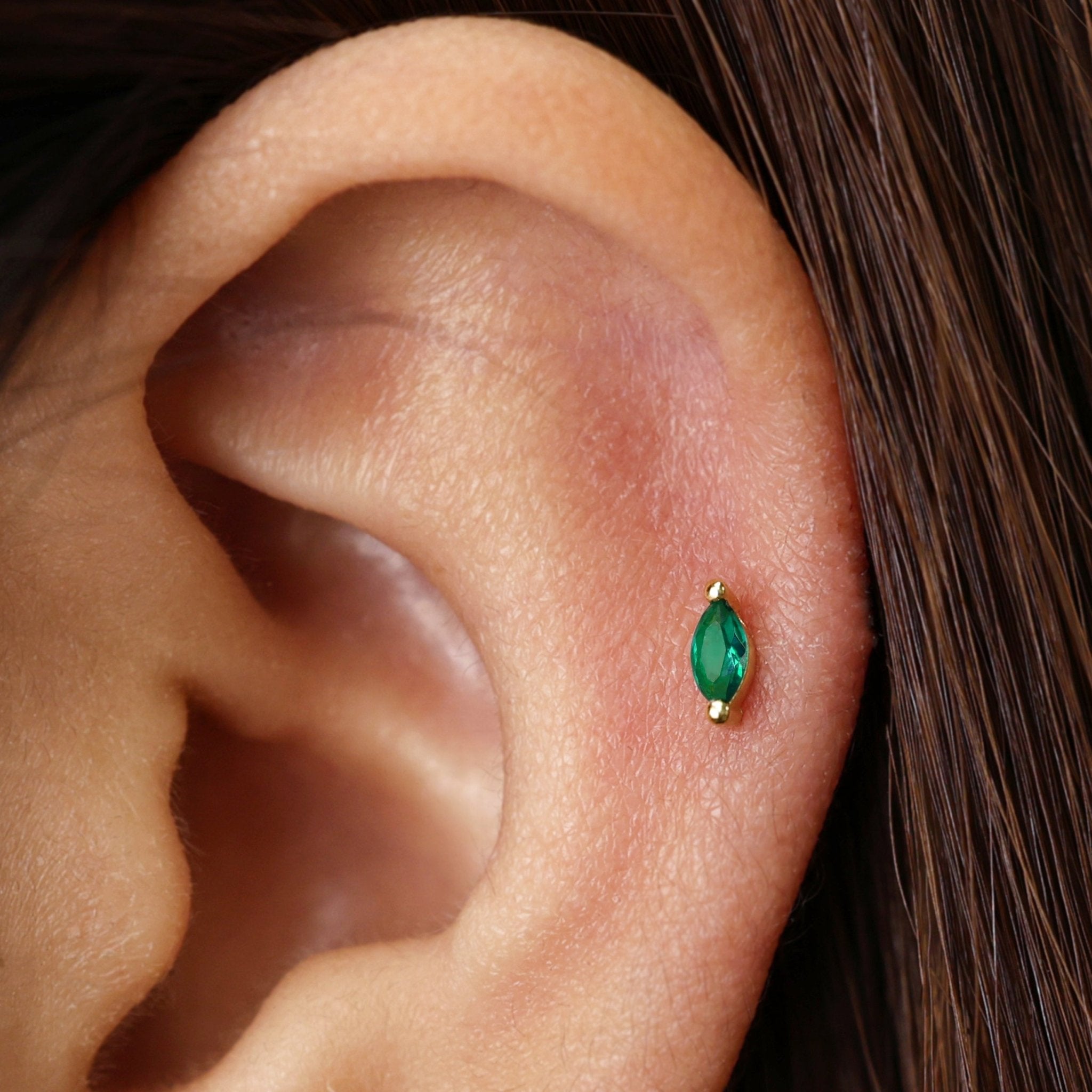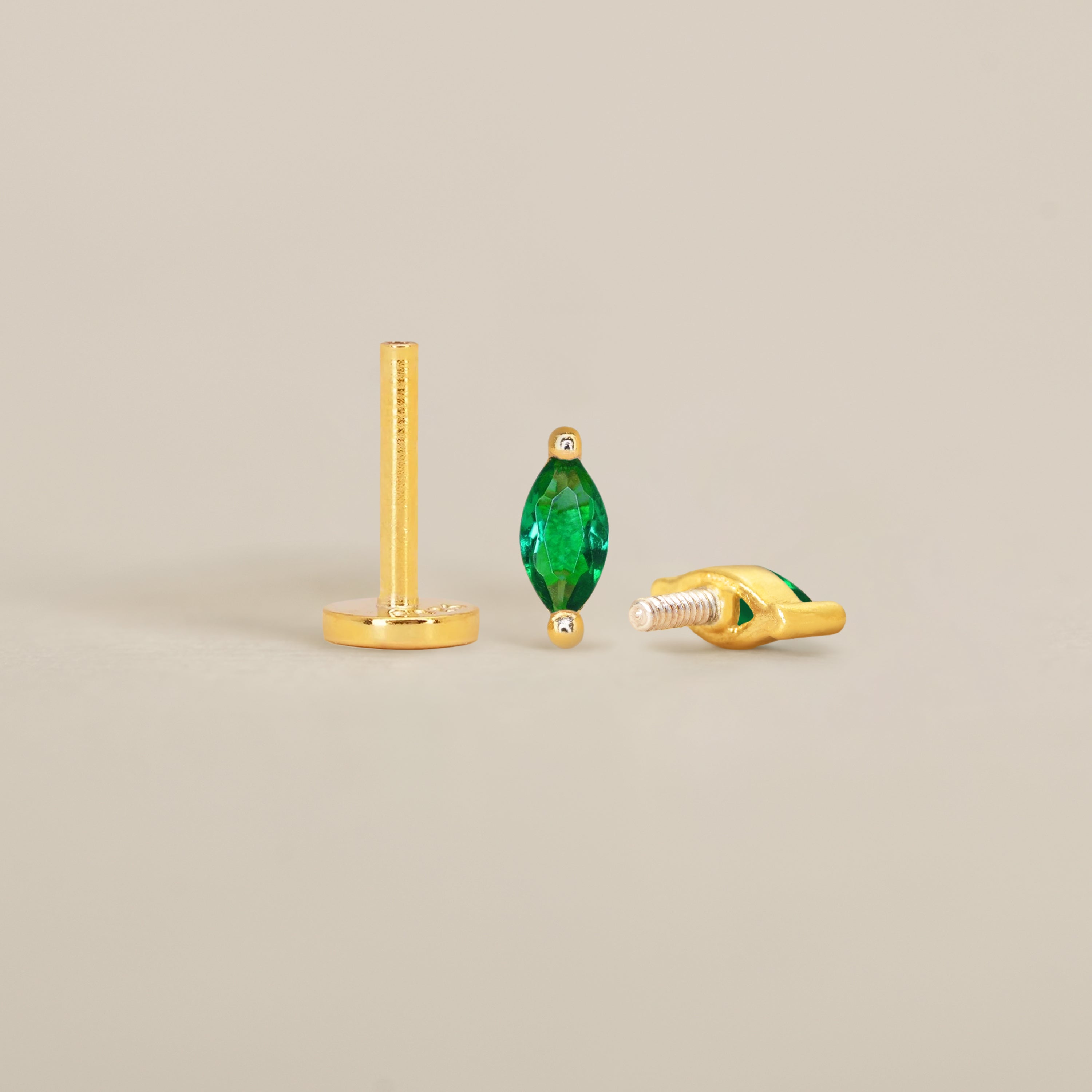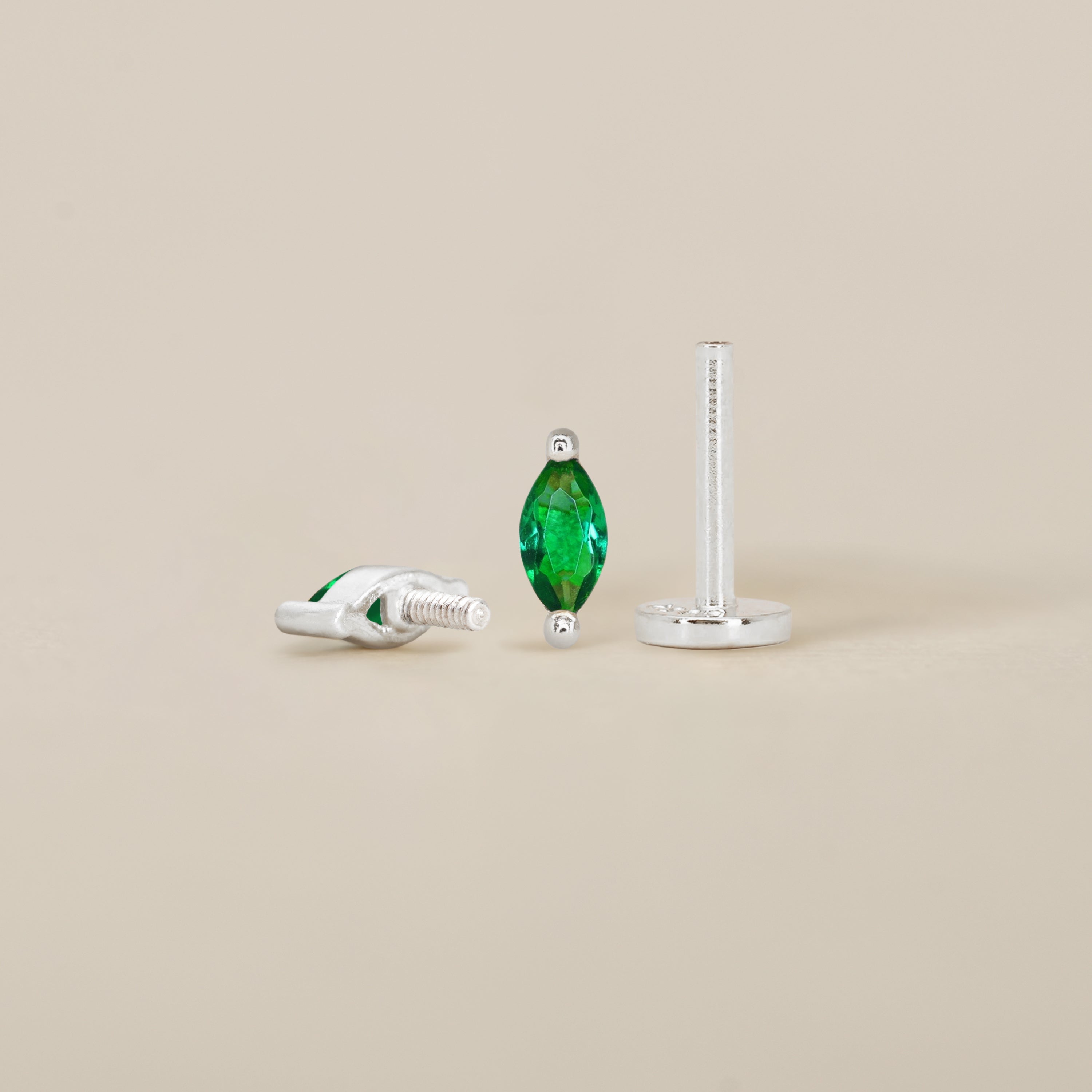 Emerald Marquise Flat Back Labret
