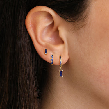 Add a touch of grace with these glamorous EVELYN sapphire earring set. The enchanting paved baguette hoop set features a pair of paved baguette charm hoop earrings, a pair of shimmering paved sapphire hoops and all-time-classic baguette stud earrings. Crafted in gold vermeil and sterling silver, the baguette hoop earrings embody timeless elegance and effortlessly elevate your everyday jewelry.