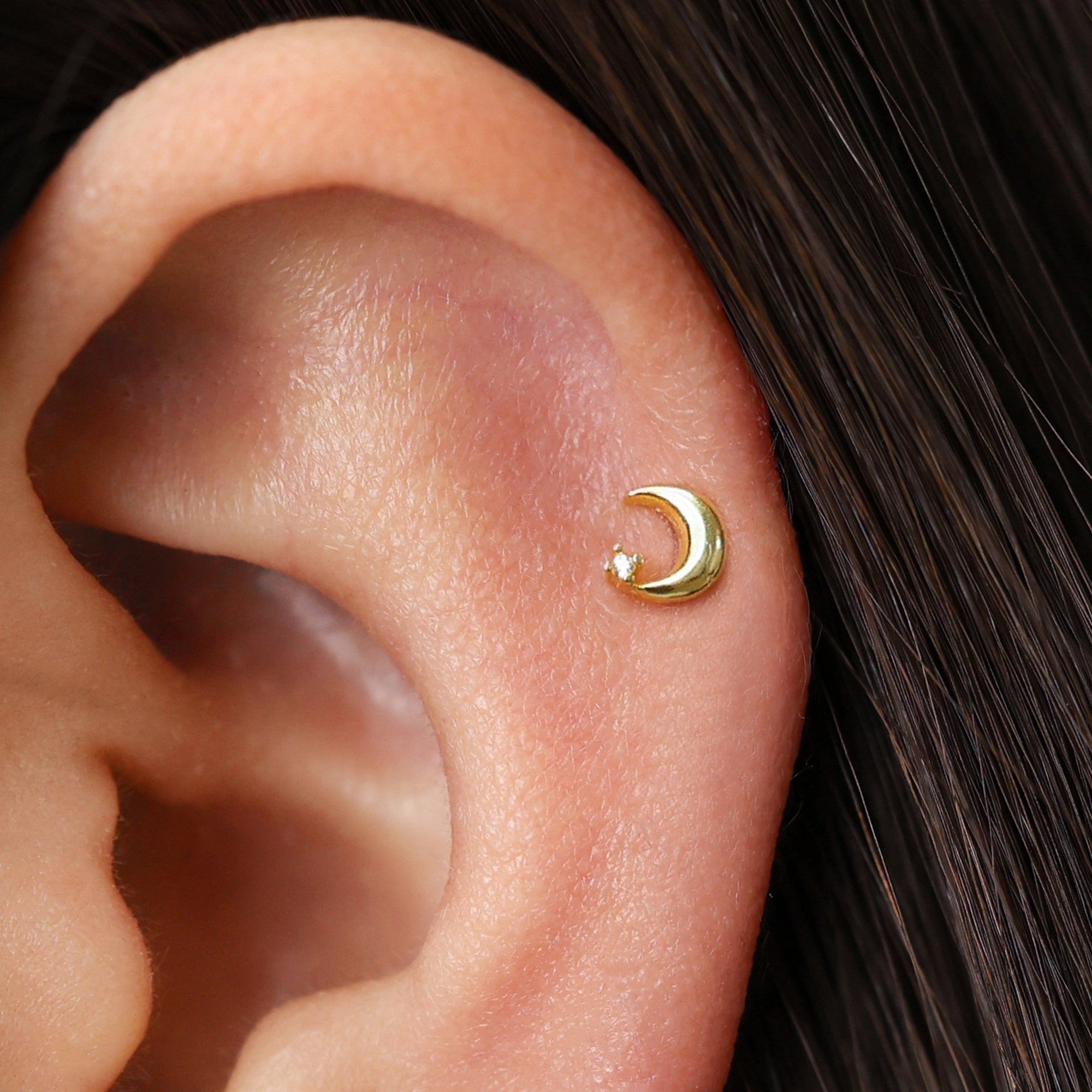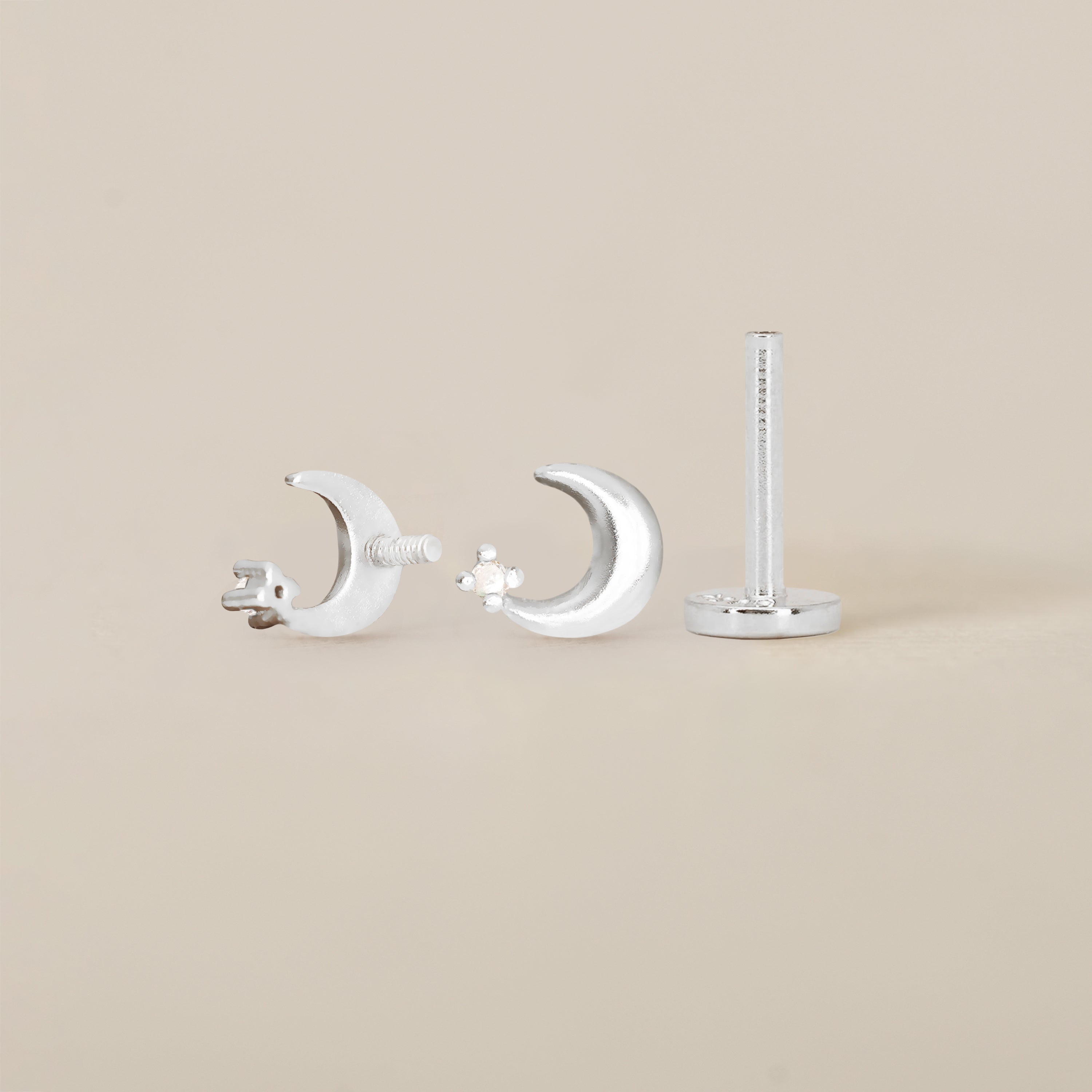 Moon with Stone Flat Back Labret