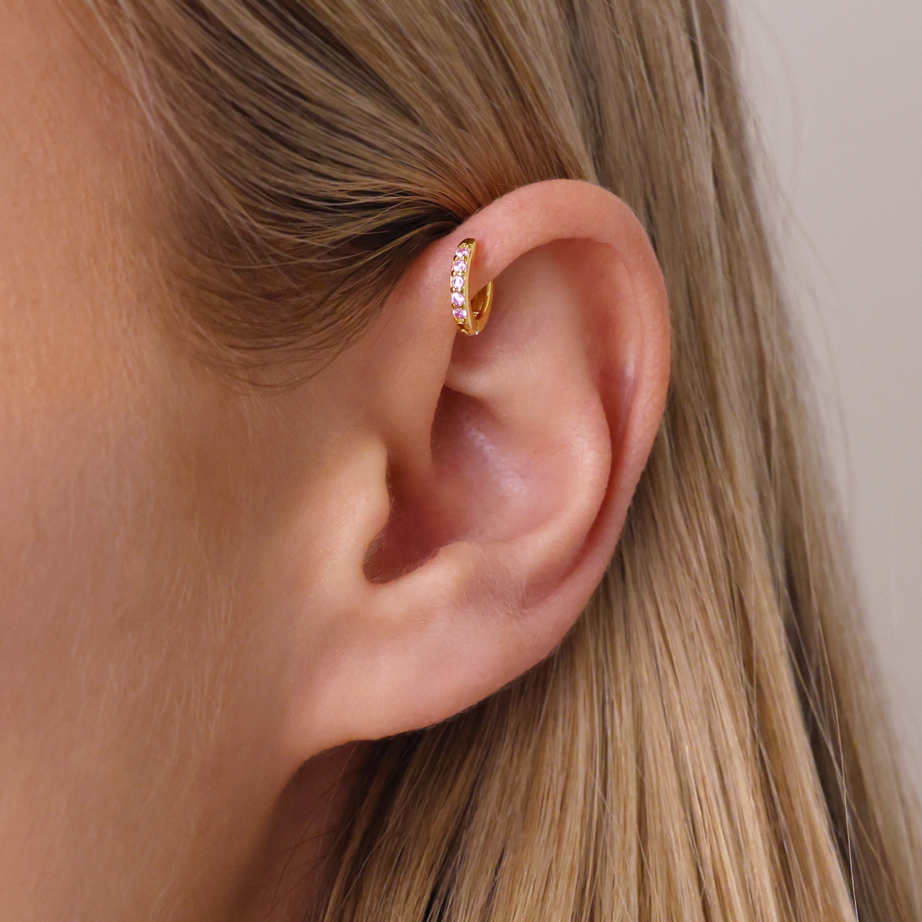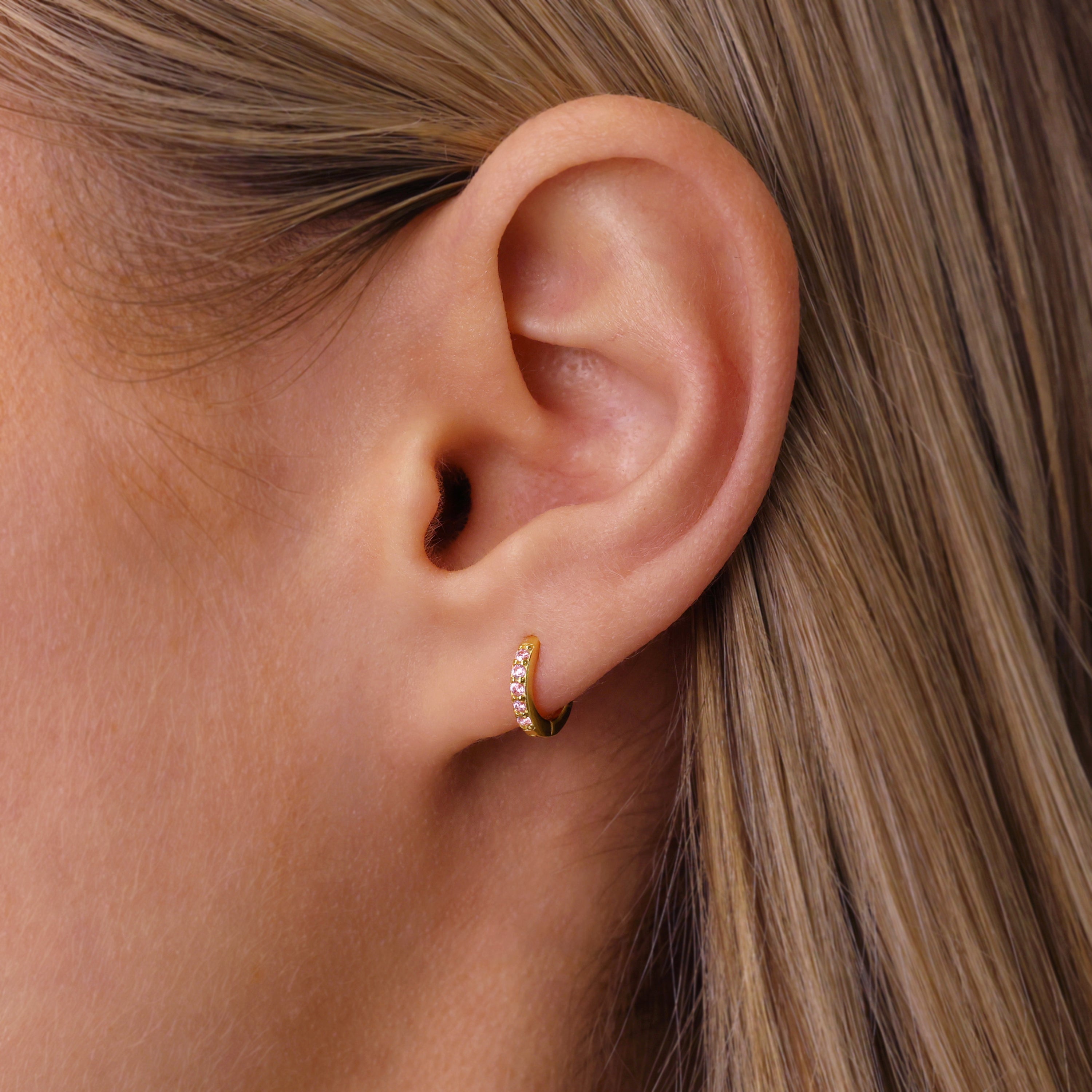 PAVED Pink Tourmaline Hoops