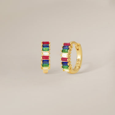 Paved Rainbow Baguette Hoops
