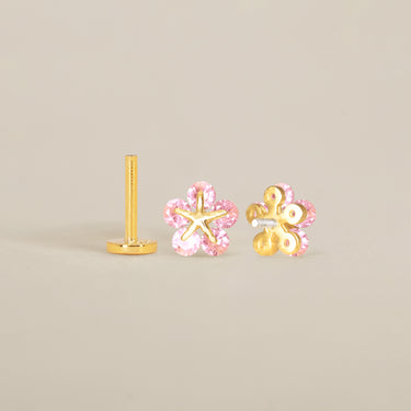 Pink Tourmaline Cherry Blossom Flat Back Labret