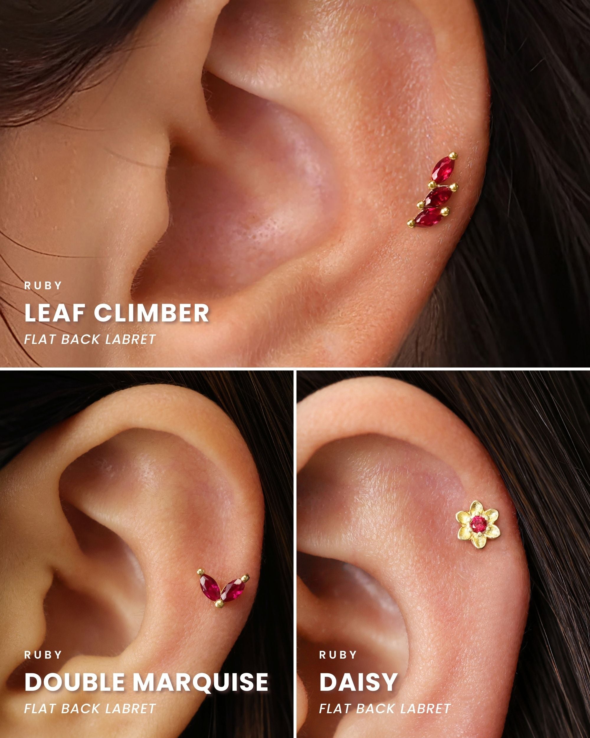 • 1 Single Ruby Leaf Climber Flat Back Labret
