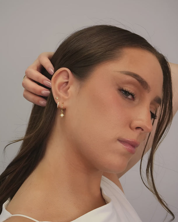 You are my sun, my moon, and all my stars. Shine like the stars with our starburst diamond earring set. The dangling shinning star charm is embellished with shimmering diamonds, making it an unforgettable statement jewelry. Crafted in gold vermeil and sterling silver, the diamond starburst earring set is the must-have jewelry to an elegant enchanting look.
