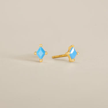 Stud earrings in turquoise gemstone for simple and minimalist looks. Featuring a dainty turquoise cut stud earring, let it sparkle perfectly on your ears as your everyday jewelry. Available in gold vermeil and sterling silver finishes.